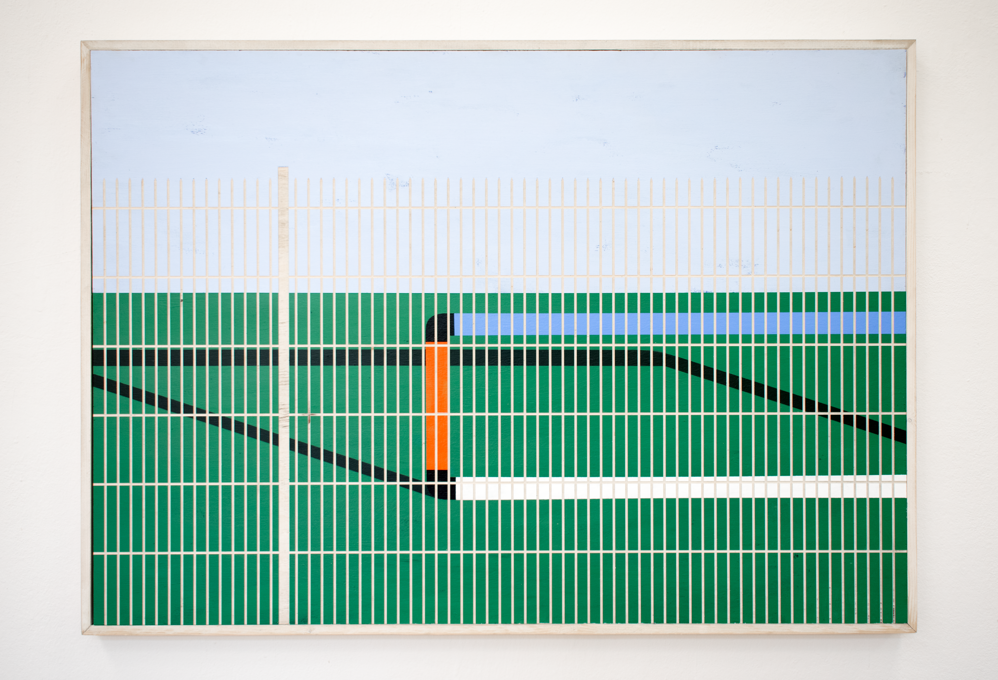 "Spießer* nennen Spießer* Spießer*", 2023 Acryl auf Multiplex, Fräsung im Malgrund 70 x 100 cm