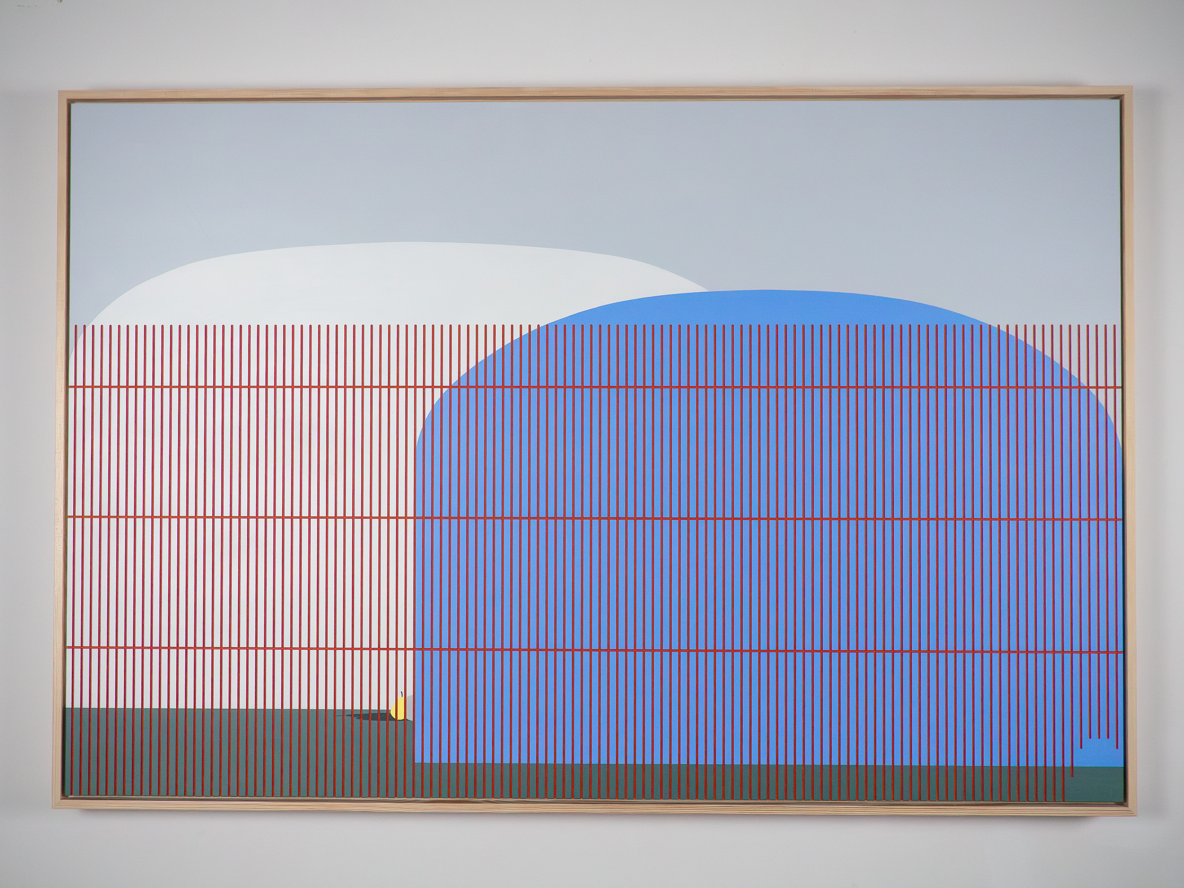 "Stadtbezirk II*", 2024 Acryl auf Mdf, Fräsung im Malgrund, 80 x 120 cm (verkauft)
